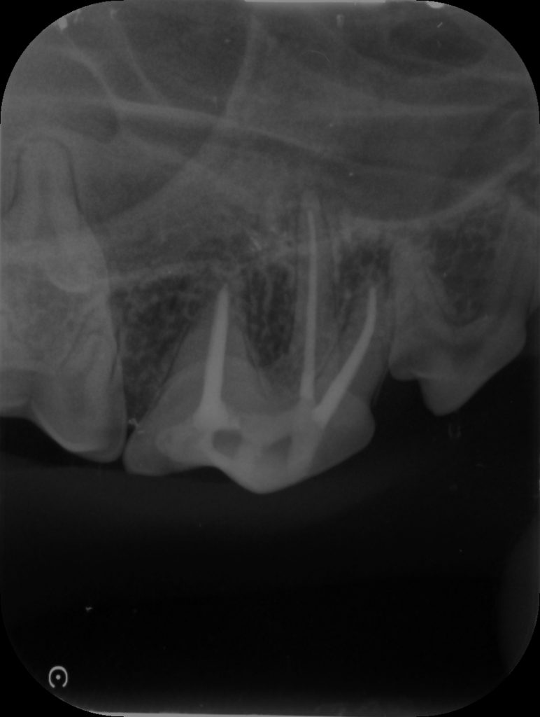 レントゲンではまだ以前の骨の変化は残っていましたが根尖周囲の骨が白さを増している状態でしたので今のところ悪化はないと判断できます。