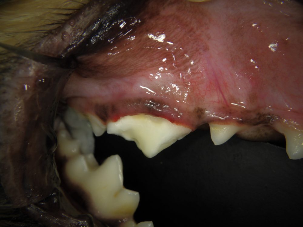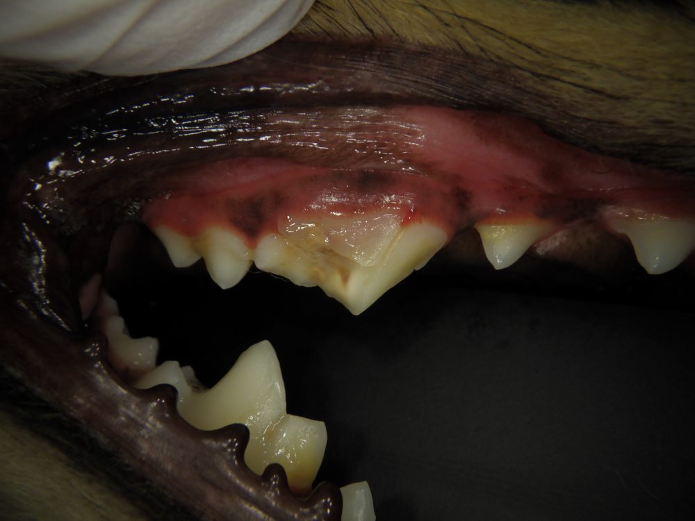 来院の2か月ほど前に硬いおもちゃを咬んで右上の奥歯がかけてしまいました。